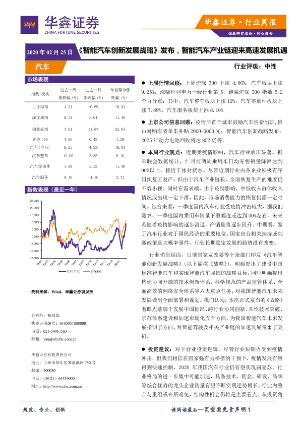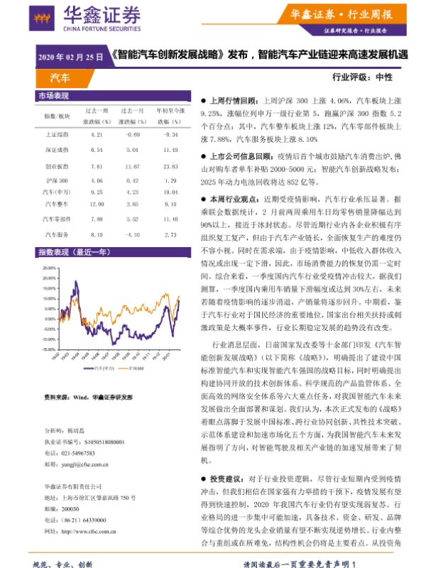 【华鑫证券】【20200225】20200225-华鑫证券-汽车行业周报:《智能汽车创新发展战略》发布,智能汽车产业链迎来高速发展机遇-19页