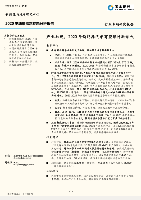 【国金证券】【20200225】2020电动车需求专题分析报告:产业加速,2020年新能源汽车有望维持高景气-24页