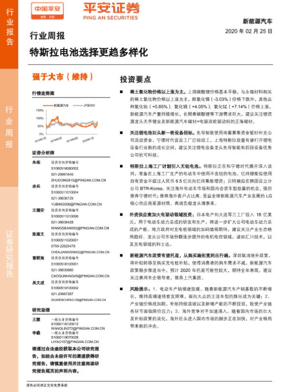 【平安证券】【20200225】新能源汽车行业周报:特斯拉电池选择更趋多样化-10页