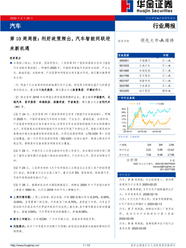 【华金证券】【20200229】汽车第10周周报:利好政策频出,汽车智能网联迎来新机遇-13页