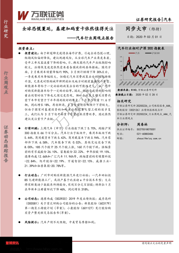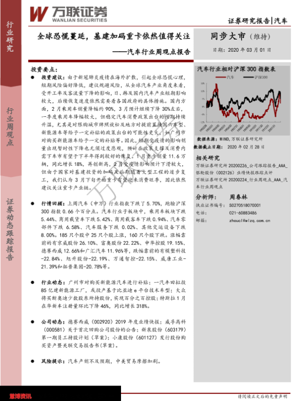【万联证券】【20200301】20200301-万联证券-汽车行业周观点报告:全球恐慌蔓延,基建加码重卡依然值得关注-13页