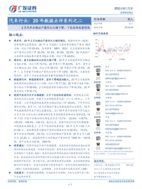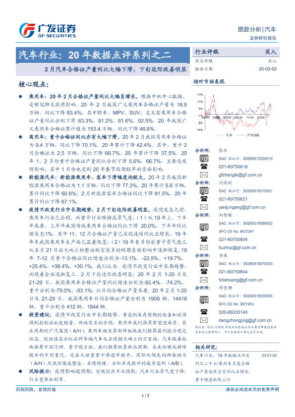 【广发证券】【20200302】汽车行业:20年数据点评系列之二-2月汽车合格证产量同比大幅下滑,下旬边际改善明显-7页
