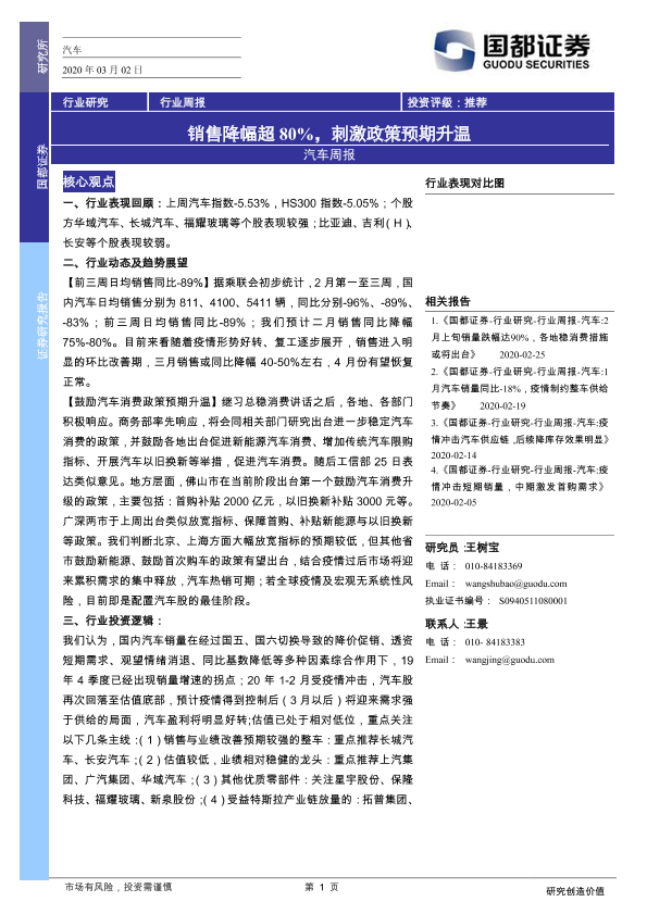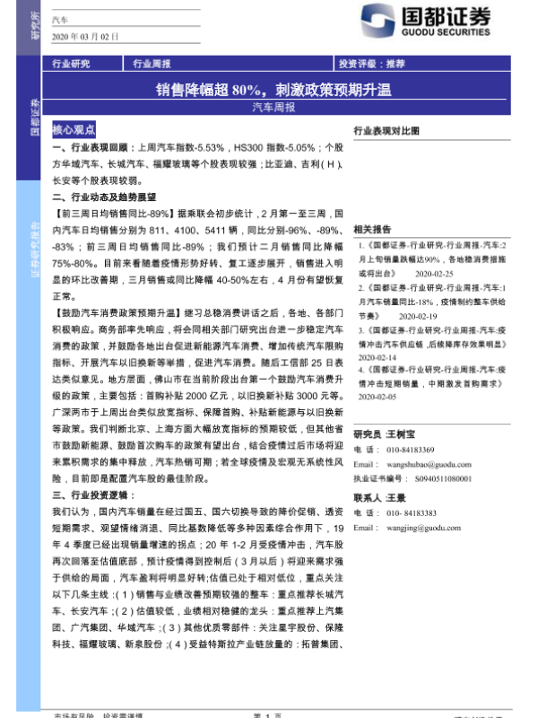 【国都证券】【20200302】20200302-国都证券-汽车周报:销售降幅超80%,刺激政策预期升温-3页