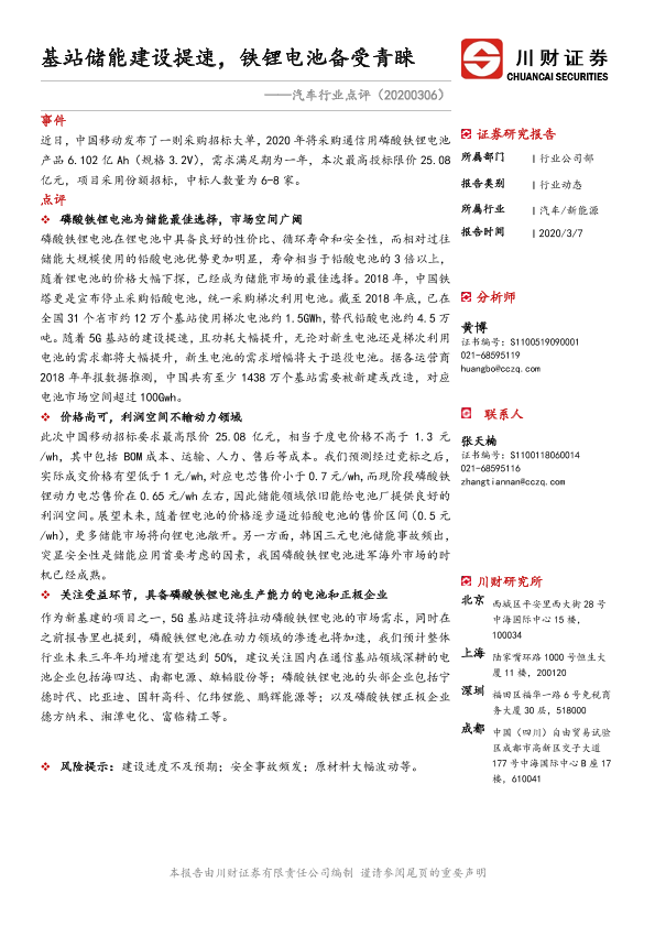 【川财证券】【20200307】汽车行业点评:基站储能建设提速,铁锂电池备受青睐-2页