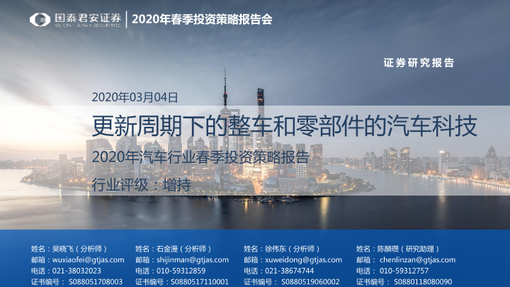 【国泰君安证券】【20200304】2020年汽车行业春季投资策略报告:更新周期下的整车和零部件的汽车科技-44页