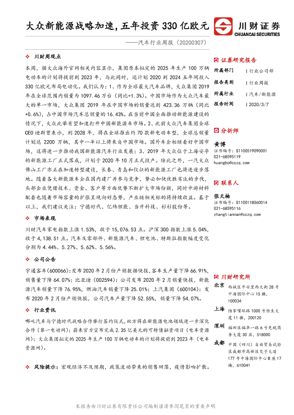 【川财证券】【20200307】20200307-川财证券-汽车行业周报:大众新能源战略加速,五年投资330亿欧元-8页