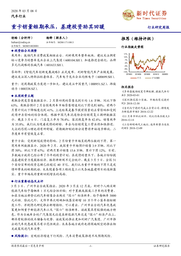 【新时代证券】【20200308】20200308-新时代证券-汽车行业研究周报:重卡销量短期承压,基建投资助其回暖-16页