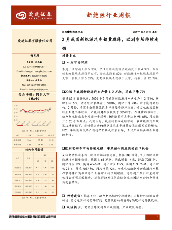 【爱建证券】【20200309】20200309-爱建证券-新能源行业周报:2月我国新能源汽车销量骤降,欧洲市场持续走强-13页