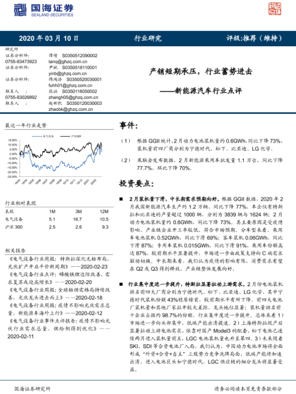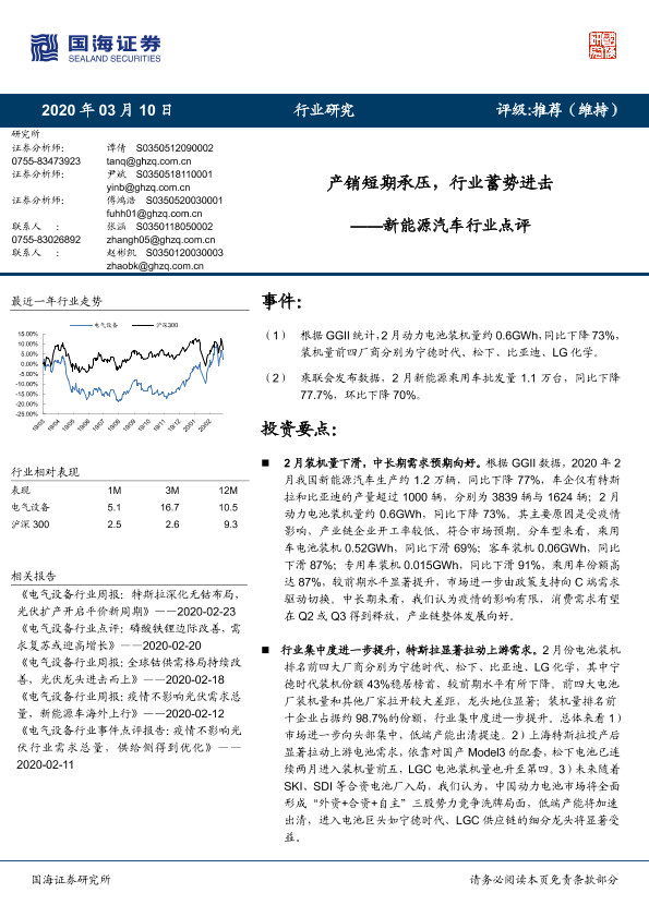 【国海证券】【20200310】20200310-国海证券-新能源汽车行业点评:产销短期承压,行业蓄势进击-6页