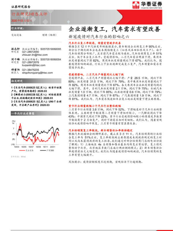 【华泰证券】【20200312】新冠疫情对汽车行业的影响之六:企业逐渐复工,汽车需求有望改善-2页