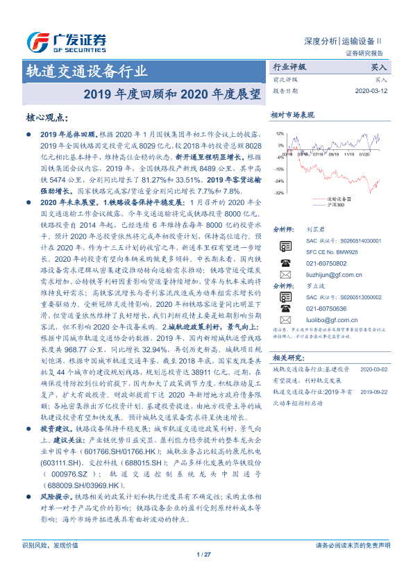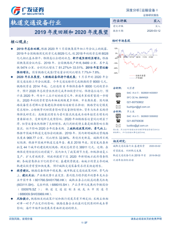 【广发证券】【20200312】20200312-广发证券-轨道交通设备行业:2019年度回顾和2020年度展望-27页