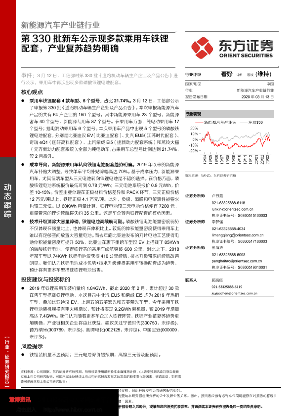 【东方证券】【20200313】第330批新车公示现多款乘用车铁锂配套,产业复苏趋势明确-3页