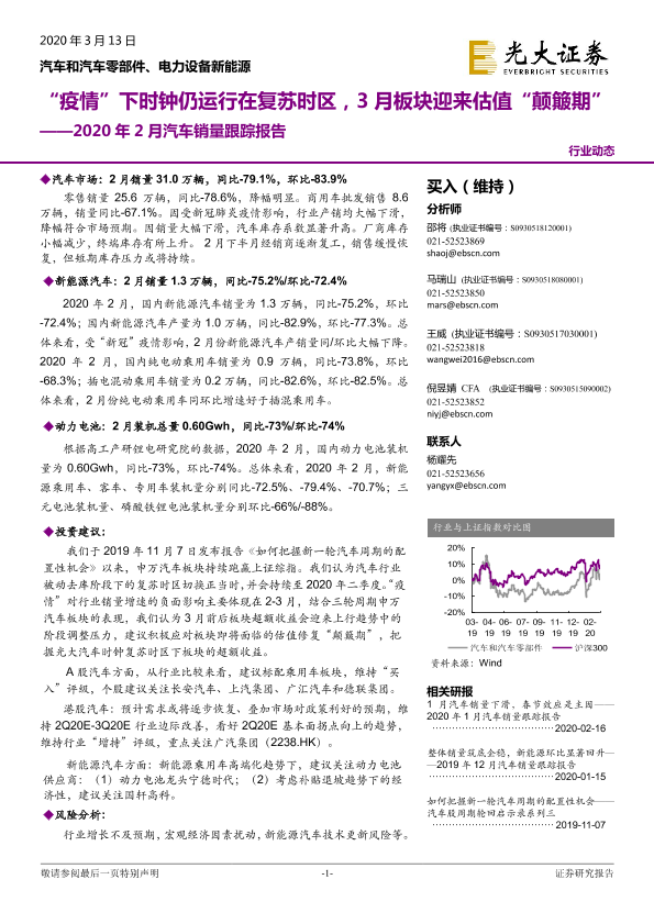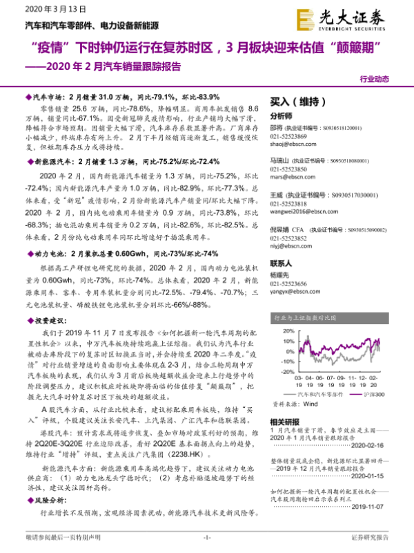 【光大证券】【20200313】2020年2月汽车销量跟踪报告:“疫情”下时钟仍运行在复苏时区,3月板块迎来估值“颠簸期”-15页