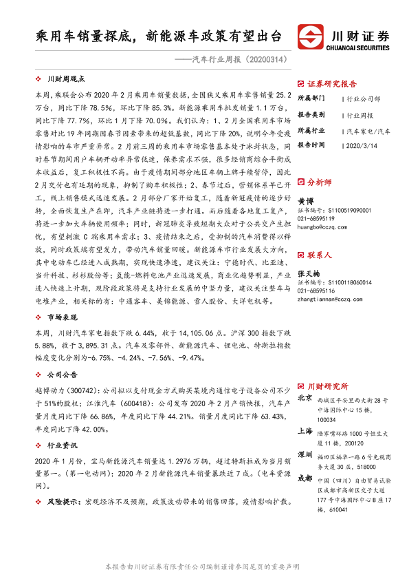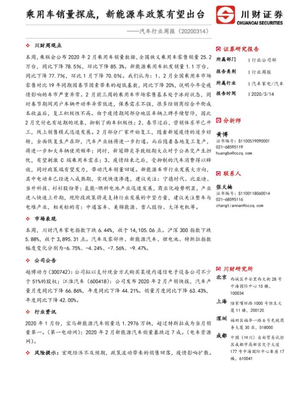 【川财证券】【20200314】20200314-川财证券-汽车行业周报:乘用车销量探底,新能源车政策有望出台-8页