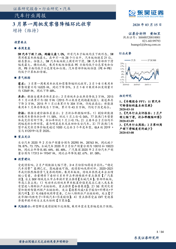【东吴证券】【20200315】20200315-东吴证券-汽车行业周报:3月第一周批发零售降幅环比收窄-14页