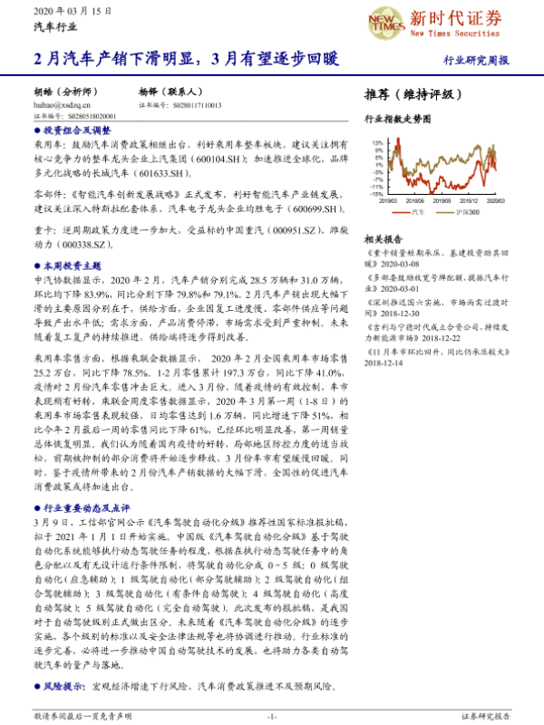 【新时代证券】【20200315】20200315-新时代证券-汽车行业周报:2月汽车产销下滑明显,3月有望逐步回暖-17页