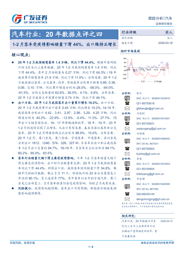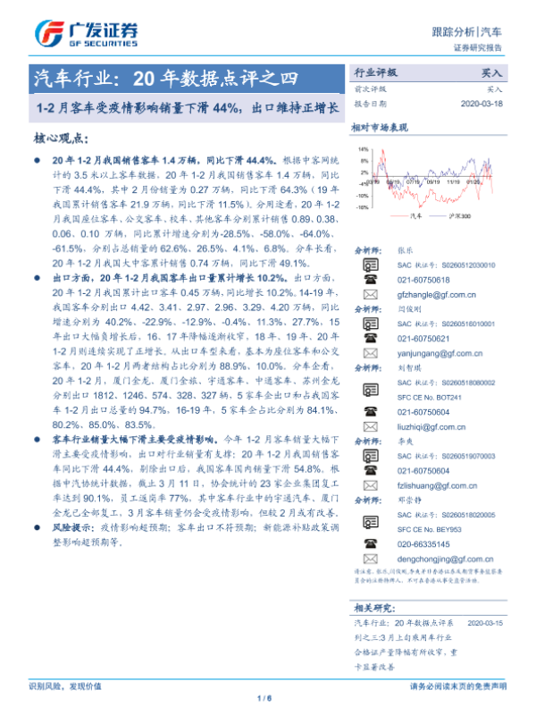 【广发证券】【20200318】汽车行业:20年数据点评之四:1-2月客车受疫情影响销量下滑44%,出口维持正增长-6页