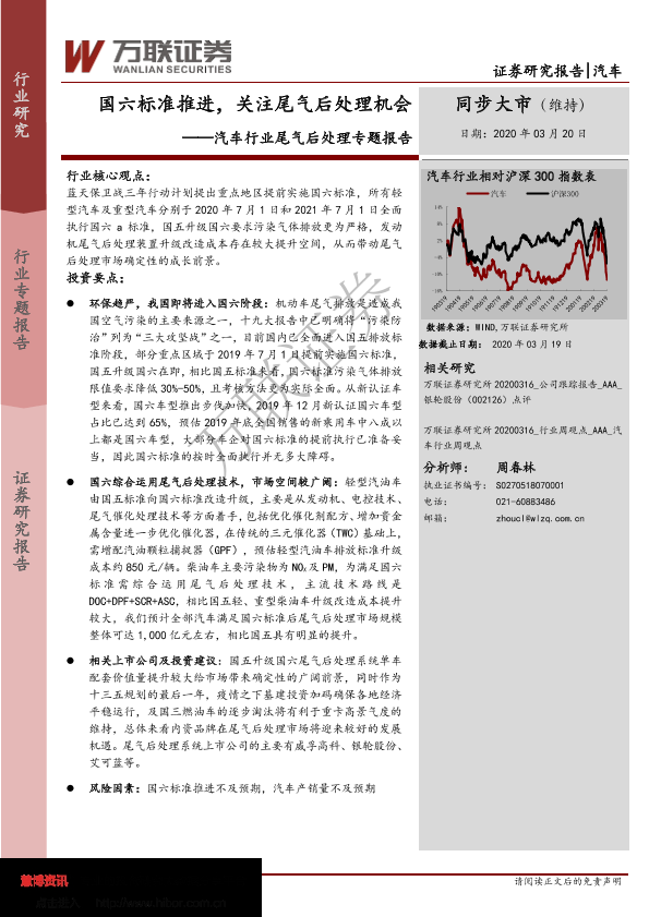 【万联证券】【20200320】汽车行业尾气后处理专题报告:国六标准推进,关注尾气后处理机会-18页