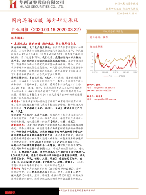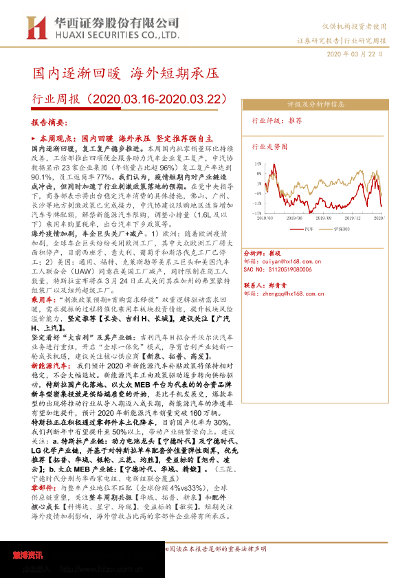 【华西证券】【20200322】20200322-华西证券-汽车行业周报:国内逐渐回暖 海外短期承压-21页