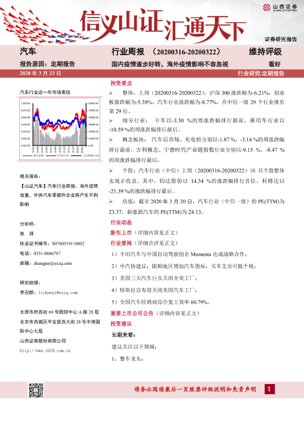【山西证券】【20200323】20200323-山西证券-汽车行业周报:国内疫情逐步好转,海外疫情影响不容忽视-15页