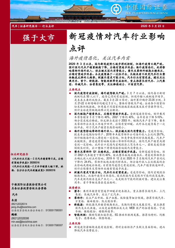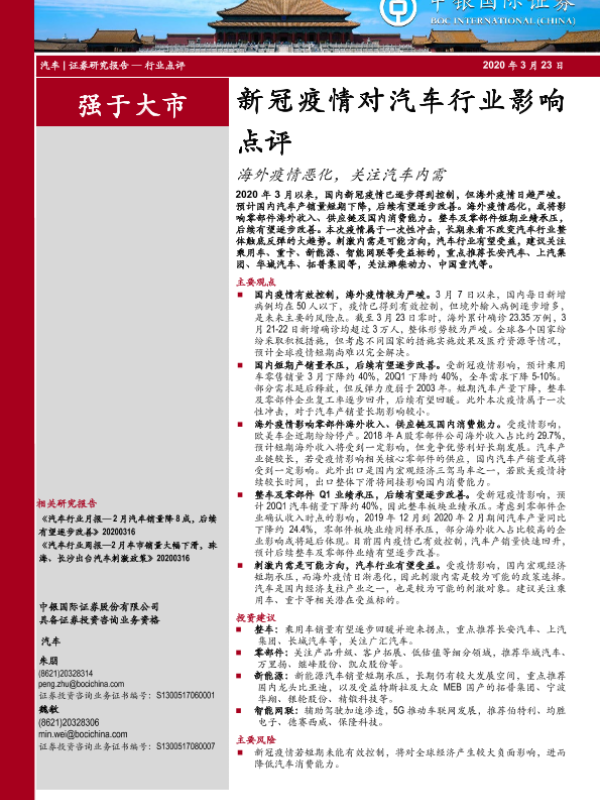 【中银证券】【20200323】新冠疫情对汽车行业影响点评:海外疫情恶化,关注汽车内需-10页