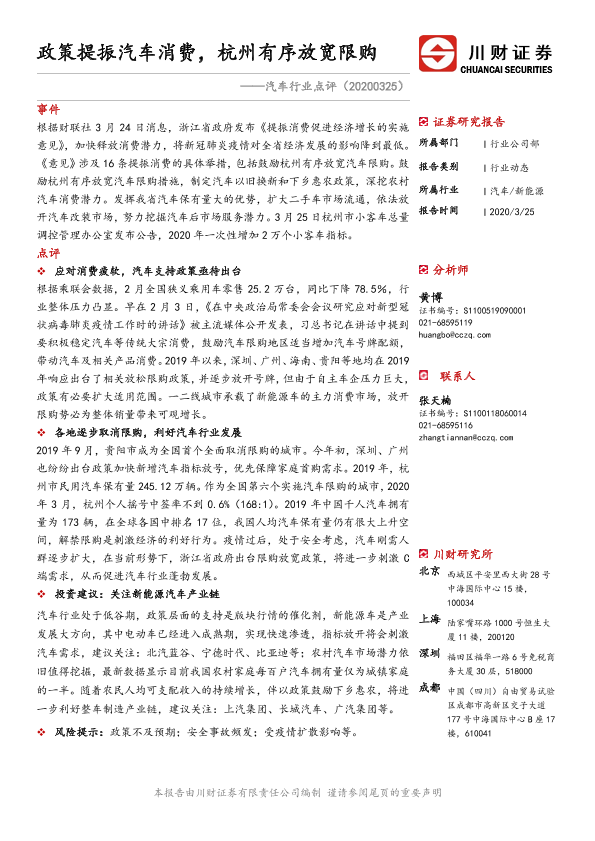 【川财证券】【20200325】政策提振汽车消费,杭州有序放宽限购-2页