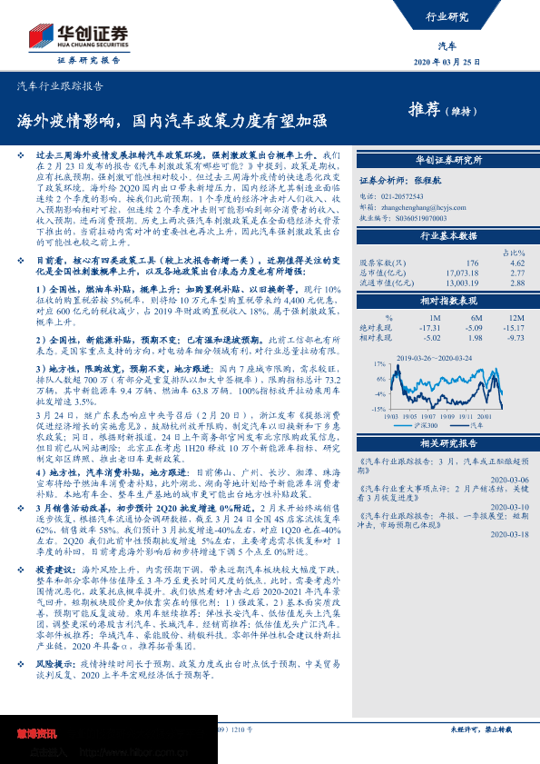 【华创证券】【20200325】汽车行业跟踪报告:海外疫情影响,国内汽车政策力度有望加强-3页