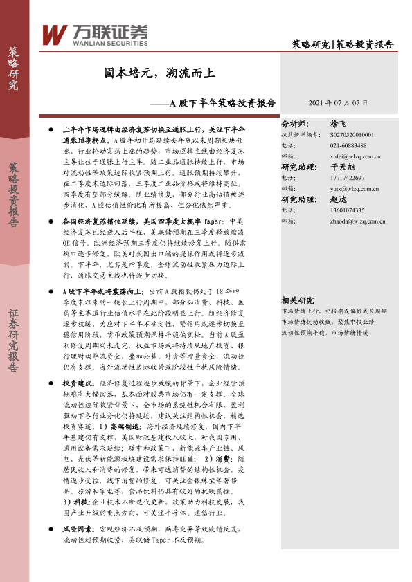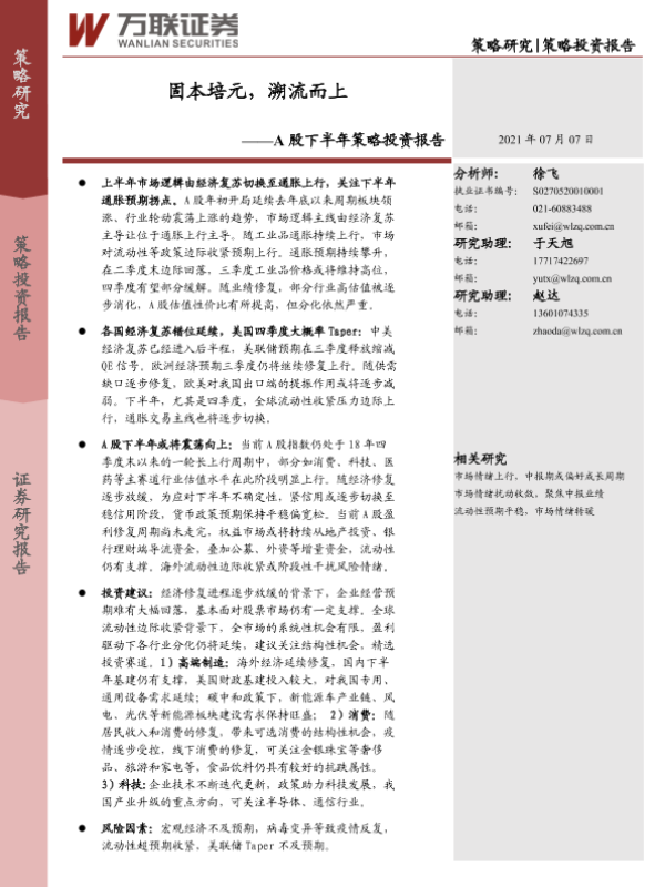 【万联证券】【20210707】A股下半年策略投资报告:固本培元,溯流而上-26页