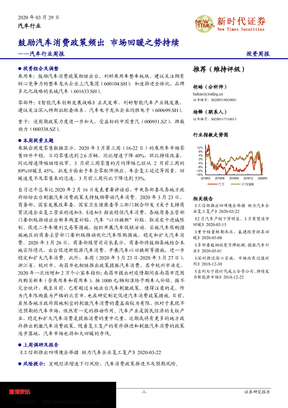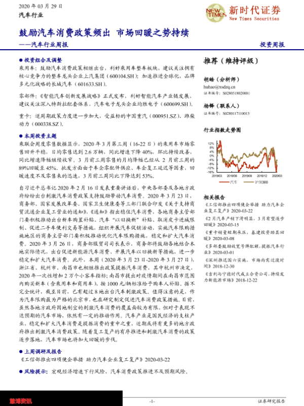 【新时代证券】【20200329】汽车行业周报:鼓励汽车消费政策频出 市场回暖之势持续-19页