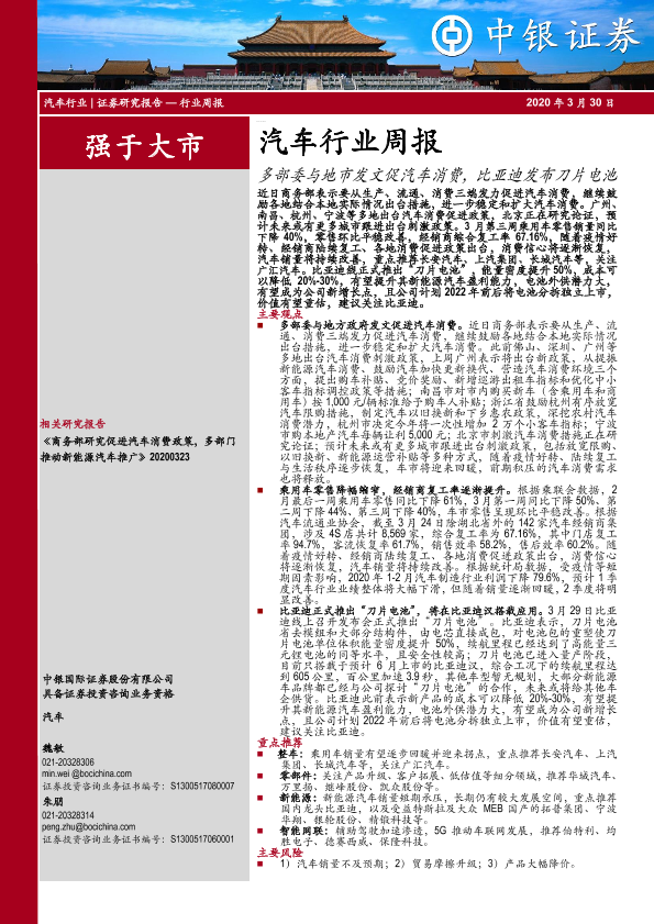 【中银证券】【20200330】20200330-中银证券-汽车行业周报:多部委与地市发文促汽车消费,比亚迪发布刀片电池-19页
