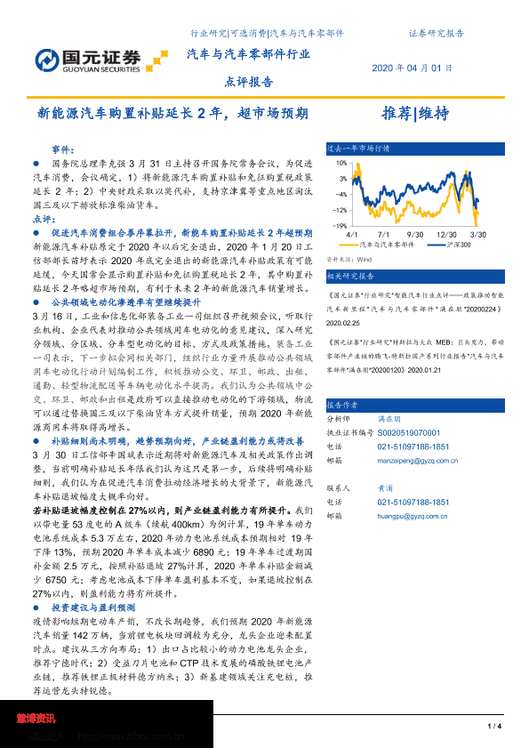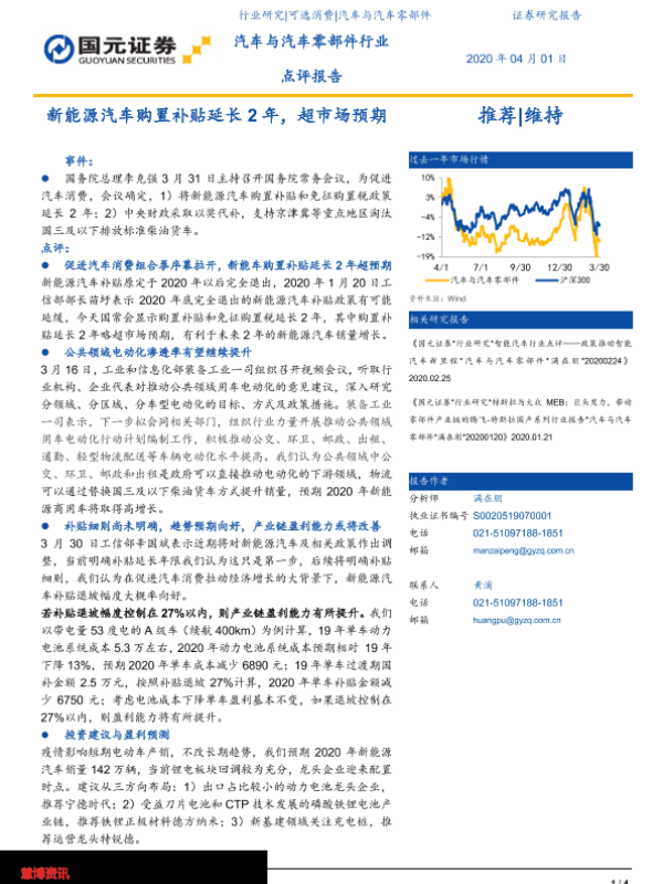 【国元证券】【20200401】汽车与汽车零部件行业点评报告:新能源汽车购置补贴延长2年,超市场预期-4页