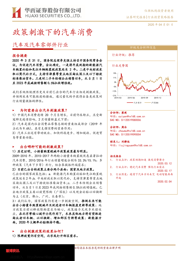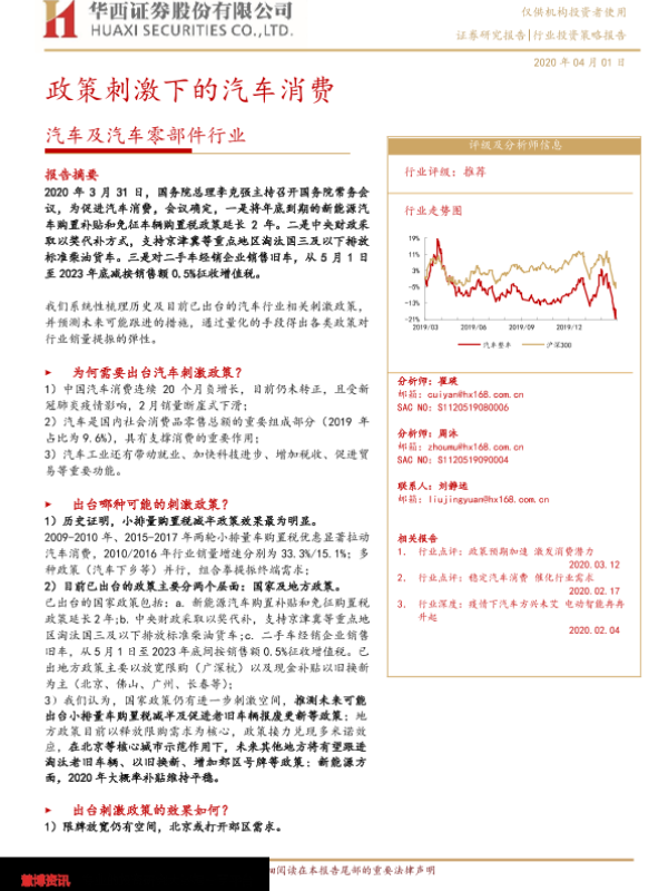 【华西证券】【20200401】汽车及汽车零部件行业投资策略报告:政策刺激下的汽车消费-29页