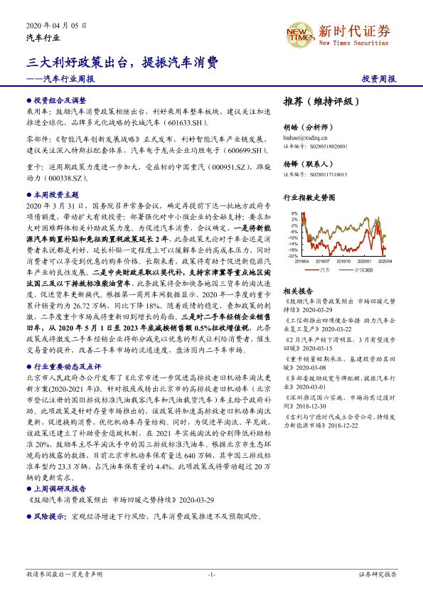 【新时代证券】【20200405】新时代证券-汽车行业周报:三大利好政策出台,提振汽车消费-20页