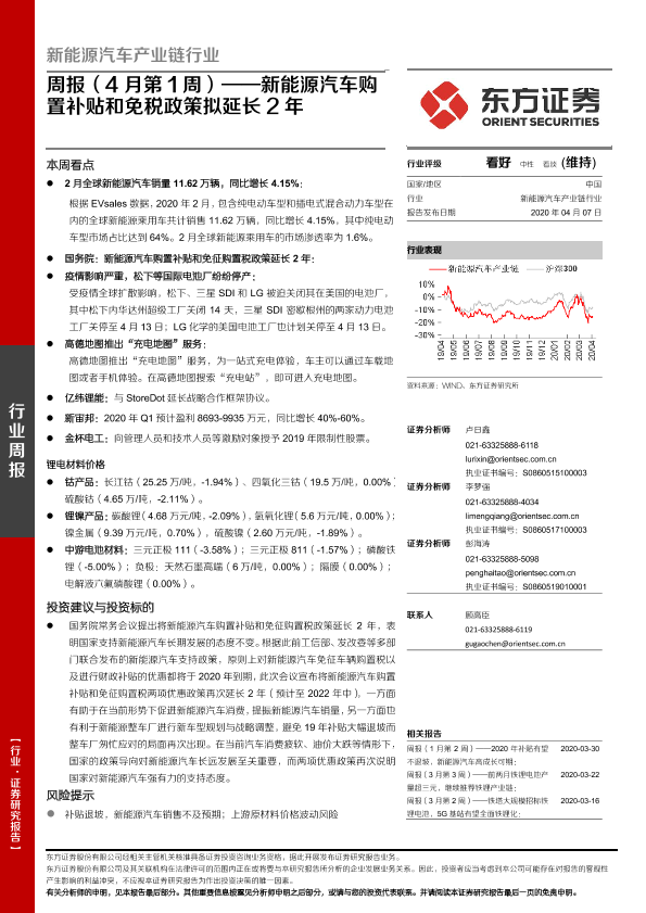 【东方证券】【20200407】新能源汽车产业链行业周报(4月第1周):新能源汽车购置补贴和免税政策拟延长2年-23页