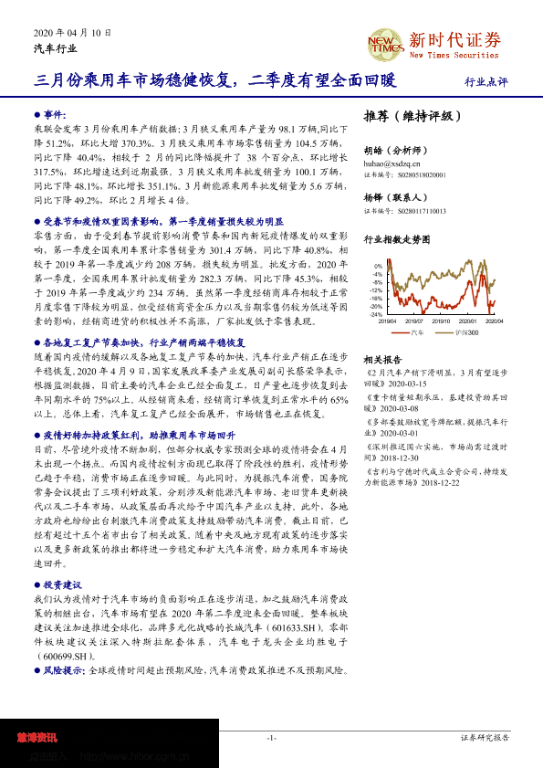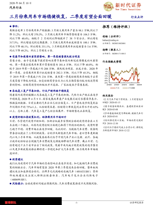 【新时代证券】【20200410】20200410-新时代证券-汽车行业点评:三月份乘用车市场稳健恢复,二季度有望全面回暖-8页