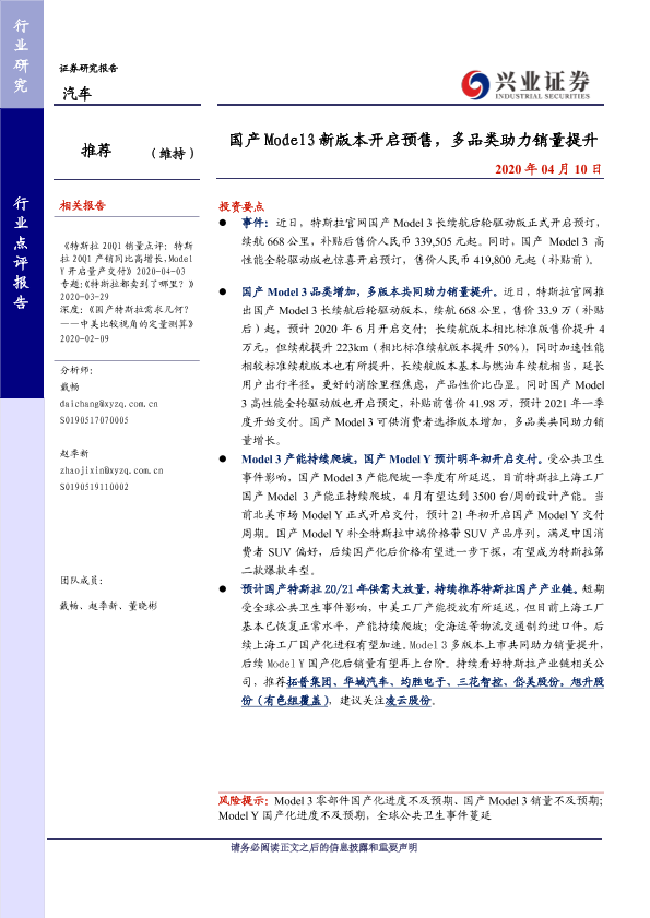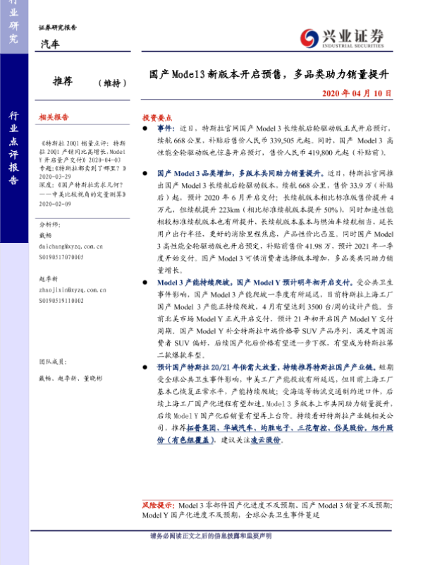 【兴业证券】【20200410】国产 Model3新版本开启预售,多品类助力销量提升-4页