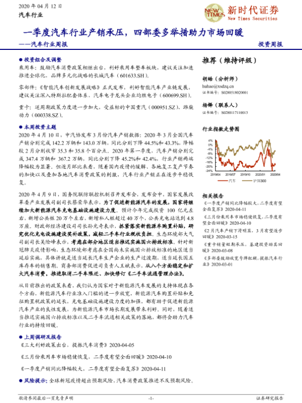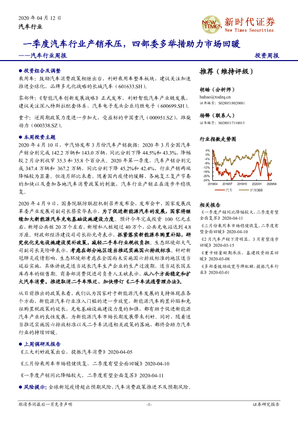 【新时代证券】【20200412】一季度汽车行业产销承压,四部委多举措助力市场回暖-21页