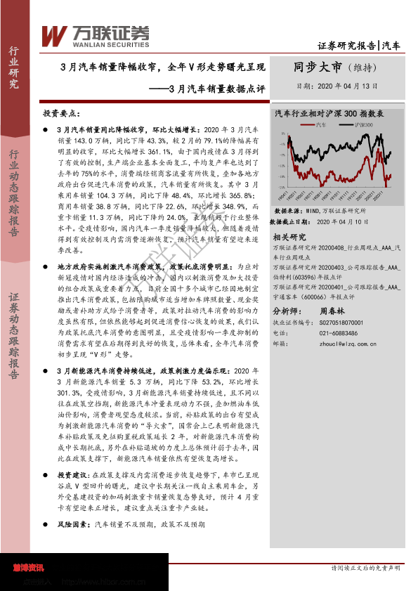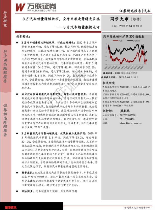 【万联证券】【20200413】3月汽车销量数据点评:3月汽车销量降幅收窄,全年V形走势曙光呈现-7页