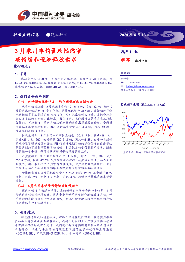 【银河证券】【20200413】3月乘用车销量跌幅缩窄 疫情缓和逐渐释放需求-4页