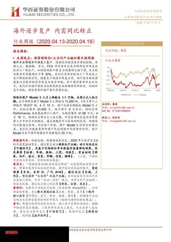 【华西证券】【20200419】汽车:行业周报:海外逐步复产 内需同比转正-25页
