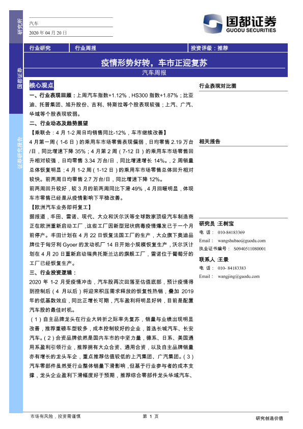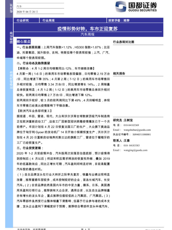 【国都证券】【20200420】汽车周报:疫情形势好转,车市正迎复苏-3页