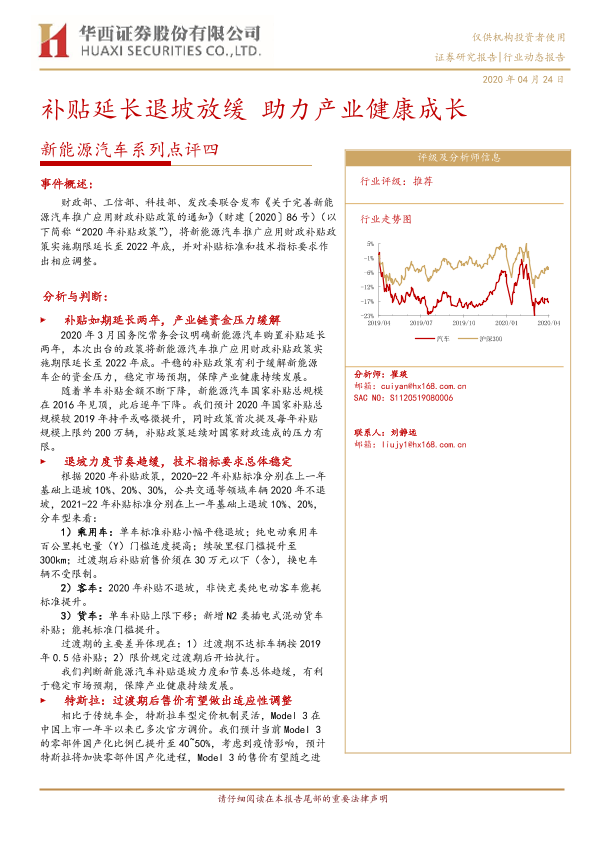 【华西证券】【20200424】20200424-华西证券-新能源汽车系列点评四:补贴延长退坡放缓 助力产业健康成长-13页