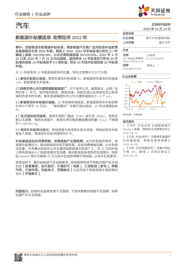 【天风证券】【20200424】汽车行业点评:新能源补贴缓退坡 政策延至2022年-3页