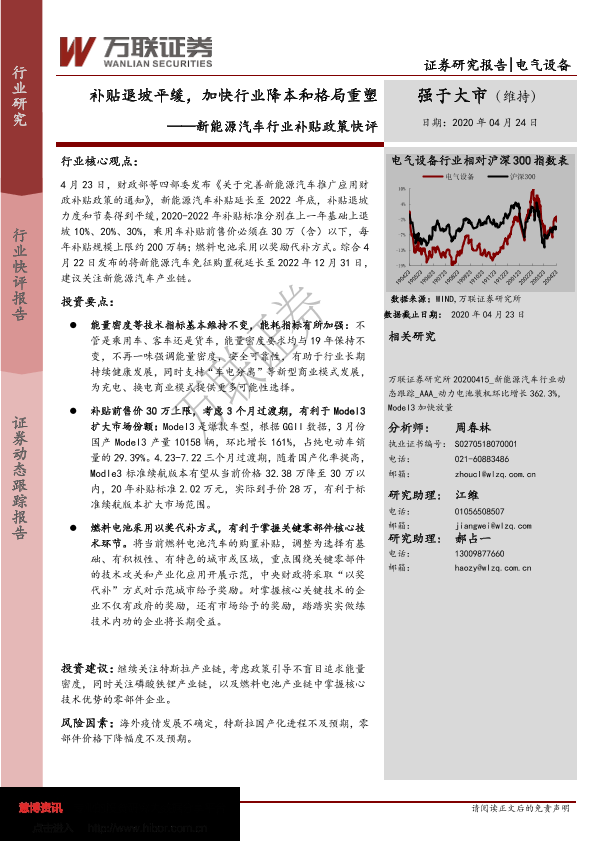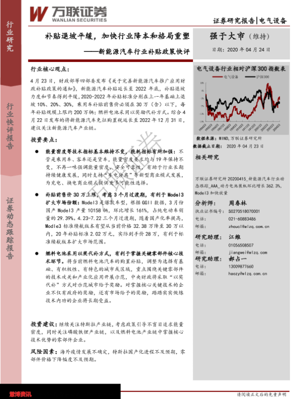 【万联证券】【20200424】新能源汽车行业补贴政策快评:补贴退坡平缓,加快行业降本和格局重塑-4页