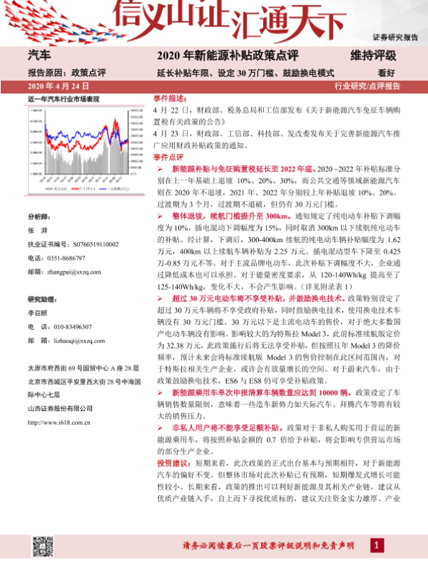 【山西证券】【20200424】汽车2020年新能源补贴政策点评:延长补贴年限、设定30万门槛、鼓励换电模式-4页