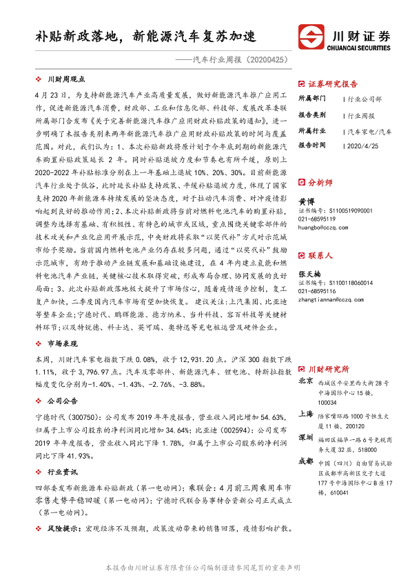 【川财证券】【20200425】20200425-川财证券-汽车行业周报:补贴新政落地,新能源汽车复苏加速-9页