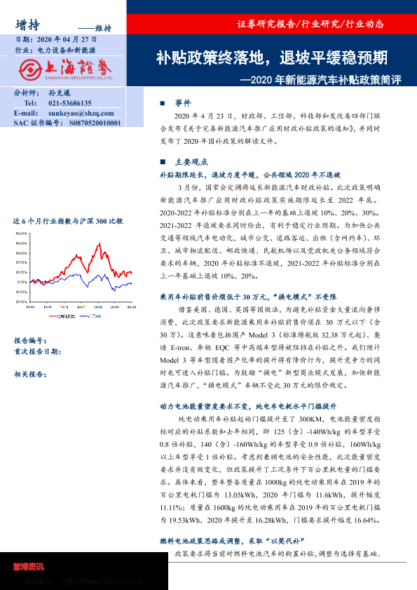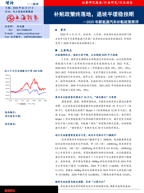【上海证券】【20200427】2020年新能源汽车补贴政策简评:补贴政策终落地,退坡平缓稳预期-6页