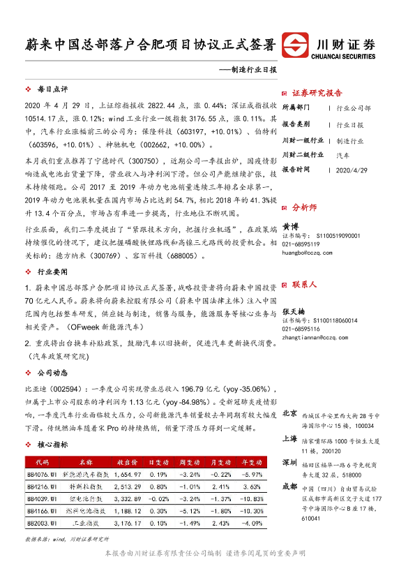 【川财证券】【20200429】制造行业日报:蔚来中国总部落户合肥项目协议正式签署-3页