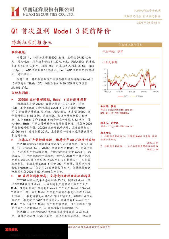 【华西证券】【20200503】Q1首次盈利 Model3提前降价-11页