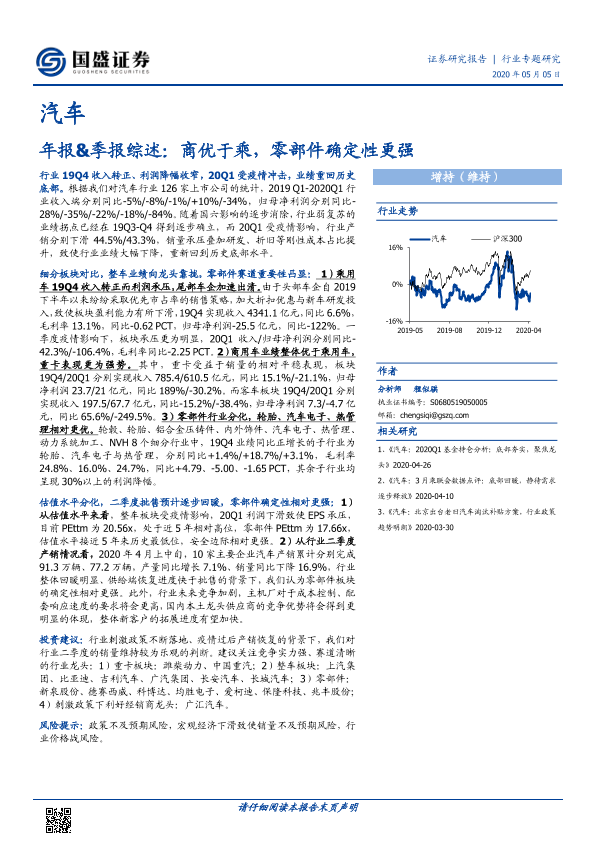【国盛证券】【20200505】汽车年报&季报综述:商优于乘,零部件确定性更强-26页